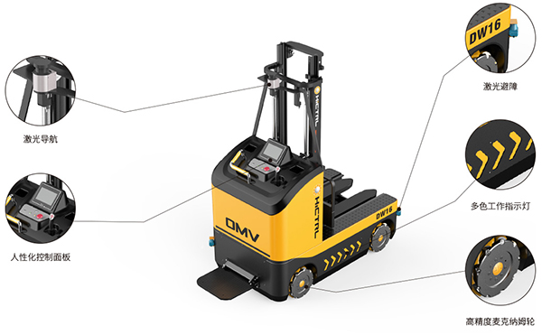 顛覆傳統叉車概念,零回轉半徑,側移,全方位無死角,任意漂移,告別傳統駕駛模式,可選配遙控器輕松操作,人身安全更有保障。新一代全向背負式堆垛車;麥克納姆輪全方位任意全向移動; 搭載激光自動導航系統;設備運行時有聲光警示;并設有系統故障診斷及電量顯示功能;具備無人化、無線遙控功能;手動遙控定位精度達到±0.5mm; 窄巷道運行提升倉儲空間;控制面板顯示屏實時狀態顯示,并顯示故障信息。