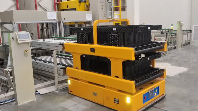 5月23日,公司收到某儲能電池國內五強企業PACK廠立庫項目訂單,本項目為軟包鋰電池電芯智能存儲項目,根據項目需要,擇優選用AGV遠距離搬運、RGV近距離快速接駁、堆垛機自動出入庫;通過創智科技自主開發的WMS系統與客戶MES無縫對接,實現物流系統無人化、無紙化、智能化。