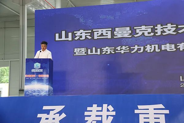 山東華力機(jī)電有限公司董事長郭永旭先生發(fā)表致辭,對(duì)出席慶典的各位嘉賓表示熱烈的歡迎。郭董提到,山東西曼克技術(shù)有限公司在高書記、李縣長等縣直各部的大力支持下終于在今天建成開業(yè)投產(chǎn),該項(xiàng)目第一期新建高標(biāo)準(zhǔn)廠房70000平方米,即將開建的第二期工程再建高標(biāo)準(zhǔn)“員工之家”樣式的廠房106000平方米,預(yù)計(jì)明年的今天建成投產(chǎn)。郭董對(duì)華力機(jī)電公司從2011年至今的發(fā)展與成就進(jìn)行了總結(jié),他指出,華力機(jī)電從銷售收入只有1億元,通過十年的拼搏到20年實(shí)現(xiàn)銷售收6. 8億元,產(chǎn)品也在不斷地更新?lián)Q代,新技術(shù)新產(chǎn)品不斷涌現(xiàn),并且得到了良好的市場應(yīng)用。郭董表示,隨著西曼克公司的新廠落成開業(yè),有決心有信心更有底氣,把機(jī)器人產(chǎn)業(yè)做強(qiáng)做大,用優(yōu)異的成績,來回報(bào)各位領(lǐng)導(dǎo)、各位客戶、各位供應(yīng)商和各位朋友的大力支持。