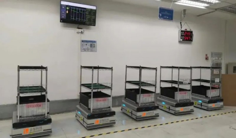 國內(nèi)首例百級無塵環(huán)境AMR應用項目。用戶通過迦智科技提供的智造物流整體解決方案,實現(xiàn)在2000平米的百級潔凈車間內(nèi),種類繁多,形狀、大小、質(zhì)量各異的三大種類、十余種物料,在產(chǎn)線各道工序間的自主柔性周轉(zhuǎn),保障了物料供給的時效性和準確率,后續(xù)進行二次復購。