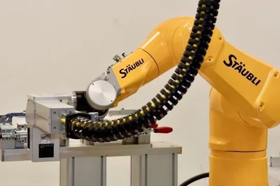 在將鋰離子電池單體插入前,激光焊接單元中的過程都是全自動化的。插入后,操作員開啟加工,史陶比爾TX2-90開始靈活、精確地焊接電池。這臺六軸機器人的任務(wù)正是:以極高精度和高動態(tài)性能,準確定位加工頭。