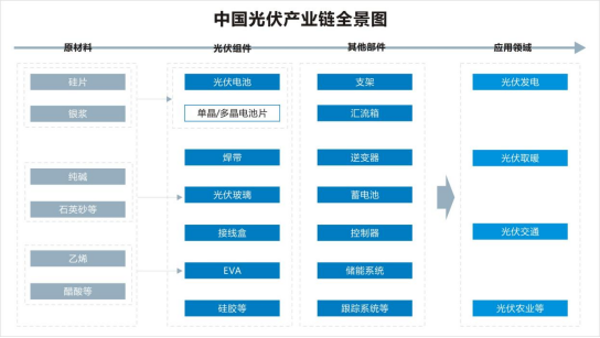在2021年度近7500億的光伏投資規(guī)模中,單個(gè)投資規(guī)模在億元以上的光伏項(xiàng)目已超130個(gè),10億元以上的項(xiàng)目近100個(gè),100億元以上的項(xiàng)目約有25個(gè)。其中全產(chǎn)業(yè)鏈一體化項(xiàng)目投資規(guī)模近2000億,每個(gè)項(xiàng)目投資手筆動(dòng)不動(dòng)就是幾百億,電池和組件環(huán)節(jié)的投資擴(kuò)張有過之而不及,億元以上的項(xiàng)目超過60個(gè),約7個(gè)項(xiàng)目投資預(yù)算在100億元以上。2022上半年,光伏產(chǎn)能投資超過了6000億,特別是龍頭企業(yè)動(dòng)輒百億的投資(公告)頻頻出現(xiàn),跨界者持續(xù)涌入,產(chǎn)能投資還在提速。光伏產(chǎn)業(yè)的擴(kuò)產(chǎn)風(fēng)潮給設(shè)備廠商帶來了巨大的機(jī)遇,光伏產(chǎn)業(yè)鏈中,上游為原材料,主要包括硅片、銀漿、純堿、石英砂等;中游為光伏電池板及光伏組件生產(chǎn);下游為光伏的應(yīng)用領(lǐng)域,光伏主要用來發(fā)電,還可以代替燃料用來取暖等。