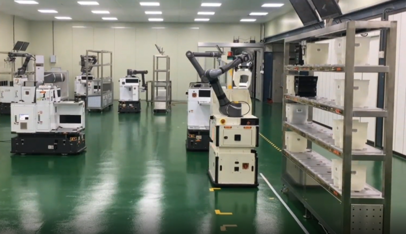 但FAB工廠的晶圓制造AMHS要進(jìn)一步提升產(chǎn)能和效率,僅依靠OHT工作效率的提升是不現(xiàn)實的。OHT受制于軌道鋪設(shè)、單維運動等因素,在未覆蓋區(qū)域的人工干預(yù)是必要的。而要實現(xiàn)全廠OHT覆蓋,AMHS系統(tǒng)的成本會非常高,而柔性極強(qiáng)的移動機(jī)器人可以打通這些節(jié)點,連通FAB工廠凈室和非凈室的物料交互,實現(xiàn)了整個FAB工廠的智能制造。