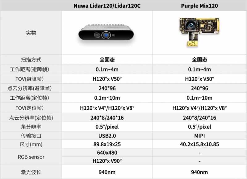產(chǎn)品將重點(diǎn)針對(duì)機(jī)器人應(yīng)用領(lǐng)域,有效解決導(dǎo)航、避障功能模塊分離造成的機(jī)器人整機(jī)產(chǎn)品形態(tài)設(shè)計(jì)困難、傳感模塊多而成本高的問(wèn)題。此外,傳統(tǒng)的LDS、單點(diǎn)/多點(diǎn)dToF線掃導(dǎo)航模塊都需要采用機(jī)械式或半固態(tài)的設(shè)計(jì),可靠性易受影響,而Nuwa-Lidar120和PurpleMix120都采用了全固態(tài)的方案,產(chǎn)品內(nèi)部沒(méi)有任何的機(jī)械振動(dòng)和微機(jī)械振動(dòng),是針對(duì)產(chǎn)品可靠性和壽命優(yōu)化最理想的方案之一。