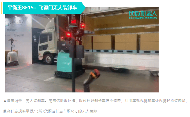 勱微機器人平衡重式無人叉車SE15也在本次展會中    亮相,該車型具備極強場景延展性,適用田、川多類型托盤,既可以滿足場內物流堆高需求,又兼具有運行速度快、爬坡能力好、載重極限高的優勢,輕松應對高負載高舉升作業場景,兼容任意規格平板/飛翼/貨廂及任意車廂尺寸的無人裝卸,實現復雜場景以及高危環境下的復合應用。
