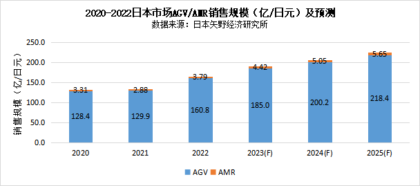 圖表:2020-2022日本市場AGV/AMR銷售規(guī)模(億/日元)及預(yù)測