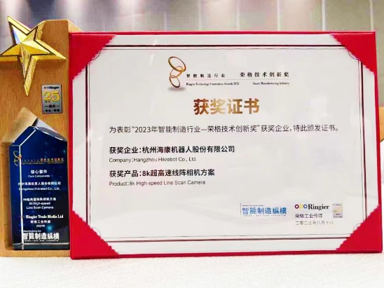 近日,2023智能制造產業發展大會與2023年智能制造行業——榮格技術創新獎頒獎典禮在蘇州隆重舉行。經過業內權威專家進行評審,海康機器人憑借8k超高速線陣相機方案,在智能制造行業的創新技術中獲得“2023年智能制造行業——榮格技術創新獎”。