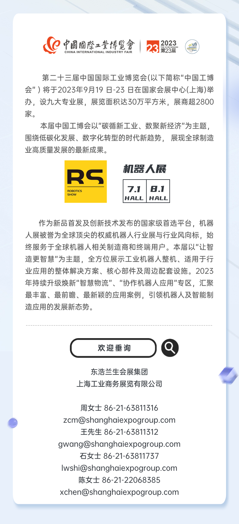 作為中國工博會旗下以“機器人”為主題的專業展,中國工博會機器人展歷經十余年的發展,已成為全球規模最大、行業影響力最廣泛之一的國際頂尖盛會,是全球工業機器人領域企業參與數最多的全產業鏈展覽平臺,已被業界譽為中國機器人產業發展的風向標。時隔三年,終于重磅歸來的年度盛會即將拉開帷幕!歷經三年打磨的機器人行業新技術、新產品、新方案、新應用已按耐不住,終于將寶刀出鞘、盡銳而出、鋒芒相會!
