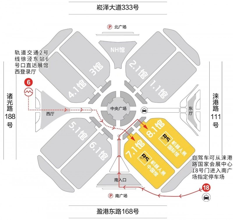 2.如果您自駕車可從國家會展中心18號口(淶港路段),進入南廣場指定停車場。從南登錄廳即可到達7.1H&8.1H。