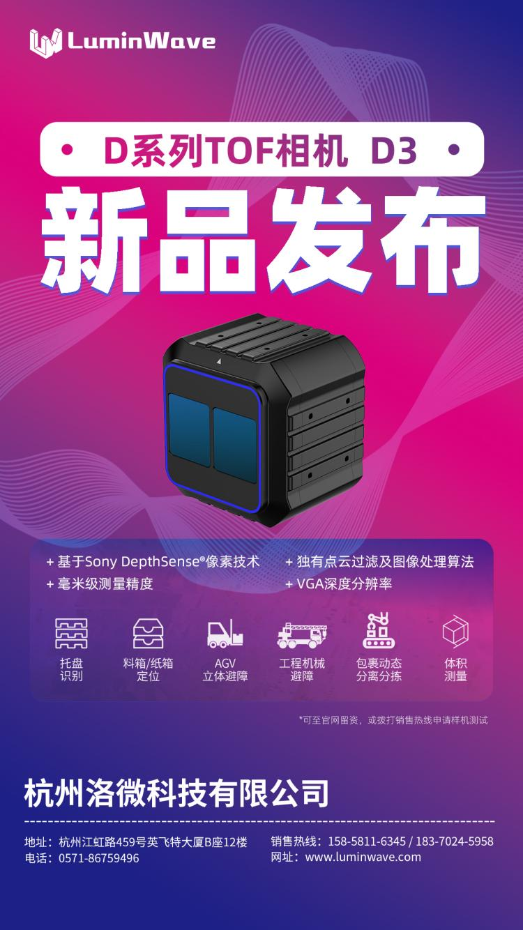 隨著工業自動化、物流科技、移動機器人領域對自動化、智能化需求的逐漸提升,更高精度、更智能的感知需求也在不斷增長。洛微科技全新高性能D系列TOF相機D3的高精度、高性能及廣泛的應用場景,將會為客戶帶來更好的產品體驗和更大的商業價值。
