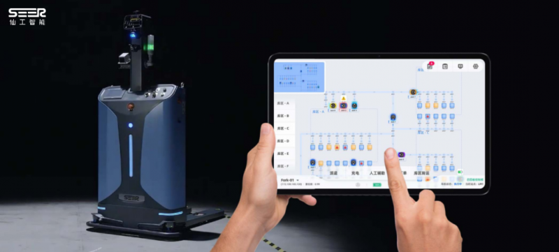 使用者可在平板上自定義起點和終點庫位,一鍵下單發起搬運任務。同時,根據業務需求,使用者也可一鍵操作調整任務,實現庫位自由智能化搬運。