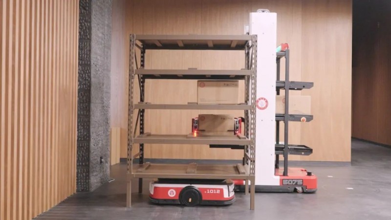 工作臺使用潛伏機器人,進行跨樓層搬運,在茶窖內料箱機器人完成茶餅存儲,實現多車型混行作業,以及不同導航方式間的平滑切換,大大提升了茶窖的倉儲柔性。