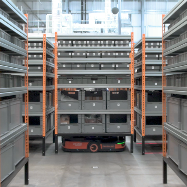 Farsound定制了多種貨架來滿足不同種類零部件的搬運需求;同時,海康機器人LMR可實現貨架的柔性適配。