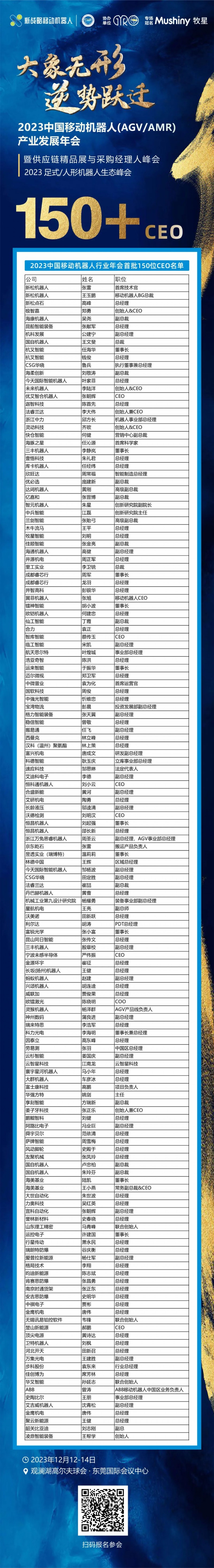 2023中國移動機(jī)器人行業(yè)年會首批150位CEO參會名單