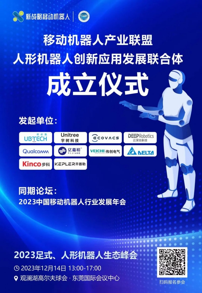 在“2023中國移動機器人(AGV/AMR)產業發展年會”上,CMR產業聯盟首次設立了足式/人形機器人專場論壇,聚焦移動機器人的最新應用及市場。此次論壇上,優必選科技副總裁、深圳研究院副院長龐建新,達闥機器人高級副總裁黃剛,智元機器人創新研究院副院長朱星,中兵智能創新研究院仿生機器人部主任江磊,億嘉和副總裁張晉博,步科電氣機器人行業解決方案總監王洋洋,偉創電氣產品總監曾深寶、高通機器人全球研發高級總監王子祥等人形機器人產業鏈代表企業相關負責人將齊聚一堂。同時,“移動機器人產業聯盟人形機器人創新應用發展聯合體”也將在此次會議上正式成立!
