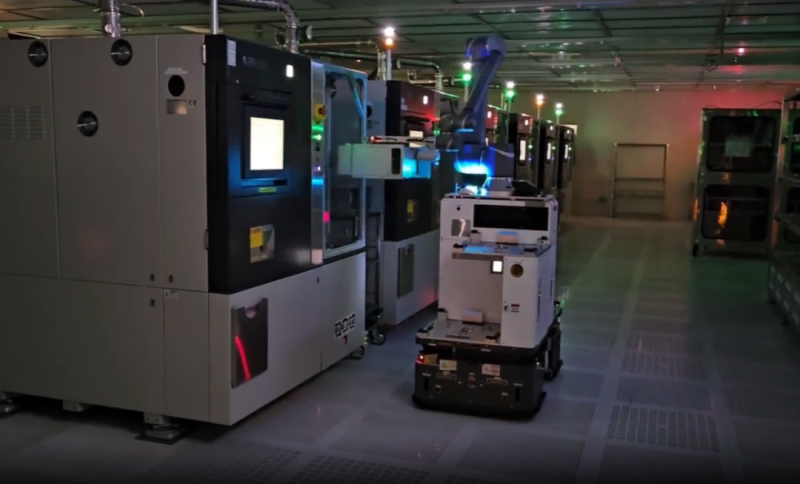 2021年,捷螺智能針對半導體生產車間布局復雜、空間局促、通道狹窄、環境動態多變等情況,并且保證載貨量最大的情況下,捷螺智能研發制造四槽位晶圓FOUP搬運機器人,可以在1m設備巷道穩定作業。同時,針對不同的場景需要,Gyrobot可以自動控制自動移門、防火門、電梯 ,實現各區域間無障礙、無人干預自動通行。例如在晶圓廠黃光/白光區、跨樓層運輸的應用有顯著效果。