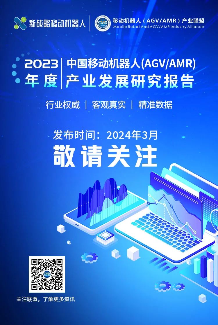 2024年3月,《2023年度中國移動機(jī)器人(AGV/AMR)產(chǎn)業(yè)發(fā)展研究報告》將正式發(fā)布,報告將對2023年中國移動機(jī)器人行業(yè)發(fā)展現(xiàn)狀做出全面解讀,包括市場規(guī)模、細(xì)分產(chǎn)品及細(xì)分行業(yè)特點(diǎn)、供應(yīng)鏈現(xiàn)狀、出海情況等。同時,《2024全球移動機(jī)器人(AGV/AMR)產(chǎn)業(yè)發(fā)展報告》也將在6月發(fā)布,敬請期待!