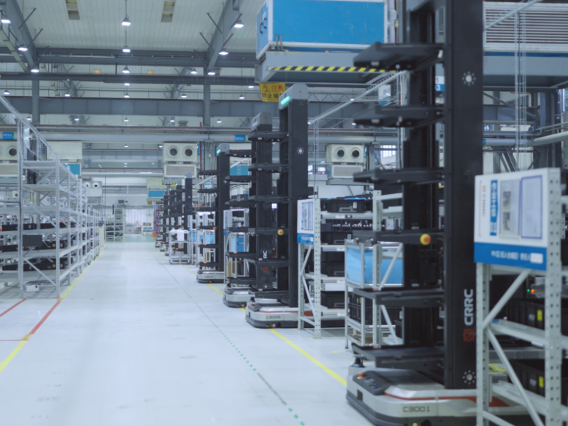 工廠專門設置集配區,把倉庫的多種物料集中起來,根據生產線特點進行二次分揀和配送。潛伏機器人與CTU有序在集配區、整柜生產區和部件生產區等多個區域接駁,將物料自動運送至不同產線,供包括和諧號、復興號動車核心裝備在內的生產使用。