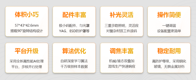 2.高速讀碼 → 全新優(yōu)化照明系統(tǒng)+AI讀碼算法,滿足小曝光高節(jié)拍讀碼場(chǎng)景。
