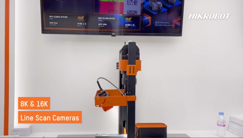 海康機器人工業讀碼模塊分別展示了移動式讀碼產品和固定式讀碼產品,移動式這邊IDH7000展示了優秀的疑難碼讀碼能力,面對油污,破損,斷針,殘缺也能游刃有余,IDP4004XR展示了超遠距離的讀碼能力,可以在15m以內的位置完成讀碼功能,適合港口集裝箱,倉庫貨架碼讀取,固定式這邊展示了海康機器人最新的ID3000XM,高幀率,低算法耗時,滿足10m/s的應用場景,適合食品飲料罐裝的讀碼追溯環節。