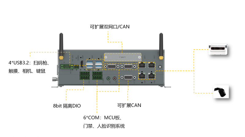 KMDA-7611是一款高性能箱體電腦,采用H610芯片組,搭載Intel®第12代Alder lake-S/第13代Raptor lake-S系列處理器,IO功能完整,體積大小適中,適用于無人叉車、機器視覺和工業控制等行業和領域。