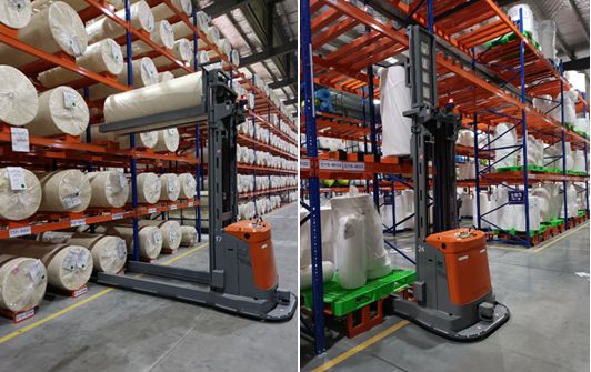 雙工位平衡重叉式AGV屬于國內首創,自動調節貨叉,可同時插取兩個或一個托盤,托盤載重可達3噸,配備3D視覺識別系統,在托盤直接堆垛存儲場景中,可識別托盤準確位置,保證托盤精準搬運,實現成品啤酒堆碼垛安全可靠。其次,四工位萬向背輥式AGV共有4個托盤工位,可以獨立控制每個工位,可載重6噸。支持雙向卸貨,卸貨流程可根據客戶需要使用。運行速度快,載重大,定位精度高,同時具有良好的靈活性,可以實現原地旋轉。第三,AGV導航激光頭具備自動升降功能,實現不同凈空高度區域自動切換。此外AGV安裝貨物識別系統,智能識別貨物規格、高度,保證貨物叉取準確率。現場AGV通訊采用環形網絡,連接不同AGV區域,13 臺AGV統一集群調度、分配任務,實時監控AGV運行狀態。該智能物流項目是振德醫療在許昌的第5個生產基地,該基地建設規模1000余畝,建筑面積達43萬平方米,基地園區內物流路線縱橫交錯,路線長、產品線多、產品切換頻繁,應用場景復雜、從事物流搬運、存儲、分揀、配送在冊員工近300人。振德醫療的項目產品種類多、批量小,特別是一些定制化的產品(公司成品、半成品、原材料代碼超4萬個),生產線對于物料搬運要求高效、準確。特別原料形狀、大小存在很大差異,環境要求不同,需要不同類型車輛相互交叉作業,來滿足生產需求。該項目共投入使用59臺今天國際定制化AGV,包括三類38臺激光導航叉車AGV和21臺二維碼導航的潛伏頂升式AGV,59臺AGV共同運行在同一個車間里,協同工作,互不干擾。AGV系統在不同車型的車輛管理上實現了完美融合,真正做到了智慧物流。AGV應用場景包括原料、蛋糕卷、成品無人化、智能化精準搬運,實現了在高層貨架的上下架自動搬運、平面倉庫的自動搬運、以及半成品到使用車間的自動配送。