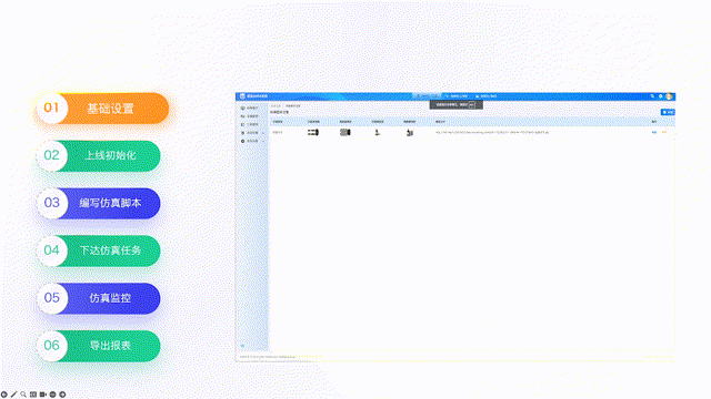 在前期施工與方案策劃上,采用基礎設置,上線初始化,仿真腳本編寫,仿真任務下達,實時仿真監控模擬,報表導出,標準六步法進行敏捷評估以達到前期模擬,快速施工的效果,功能上提供諸如設計圖紙導入,車輛行駛路線自動構圖,多人協同場景規劃,工位點自動標定,數字孿生方案一比一模擬等功能,大量縮短工期,幫助客戶快速落地項目。