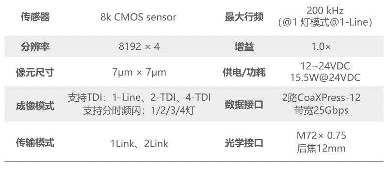 相機采用4線COMS Sensor,可支持至多4燈分時或4-TDI成像,也可實現(xiàn)2燈分時疊加2-TDI成像,采集方式靈活多樣,能夠根據(jù)不同的照明條件和目標(biāo)特性,提供最佳的成像效果,適配多種應(yīng)用需求。