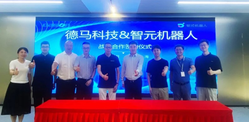 德馬科技集團股份有限公司(簡稱德馬、德馬集團)與上海智元新創技術有限公司(簡稱智元、智元機器人)正式簽約了戰略合作協議,德馬集團戰略負責人黃盛與智元機器人戰略負責人詹昆代表雙方公司進行了簽署,德馬集團董事長卓序,與智元機器人董事長鄧泰華,攜雙方領導在現場共同見證了該重要協議的簽約。