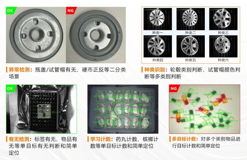 海康機(jī)器人全新推出的邊緣學(xué)習(xí)算法,覆蓋有無、正反、計(jì)數(shù)、分類等常規(guī)應(yīng)用;在工具命名上按照場景化的命名方式,讓用戶面對各種需求時(shí)能精準(zhǔn)找到自己需要的模塊,以更小樣本,更簡操作,打造視覺應(yīng)用新范式。