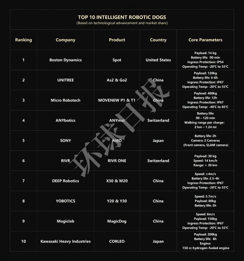近日,《環(huán)球日?qǐng)?bào)》發(fā)布世界十大智能機(jī)器狗榜單。憑借技術(shù)優(yōu)勢(shì)和市場(chǎng)份額的領(lǐng)先性,中國(guó)企業(yè)宇樹科技、具微科技、ink-id="link-1775630936585-0.15601747090660578">云深處科技、優(yōu)寶特、魔法原子五家上榜,占領(lǐng)榜單一半席位。其中,杭州作為全球機(jī)器狗出貨量最大的城市,“杭州四小狗”企業(yè)三家上榜。上榜企業(yè)如下:
