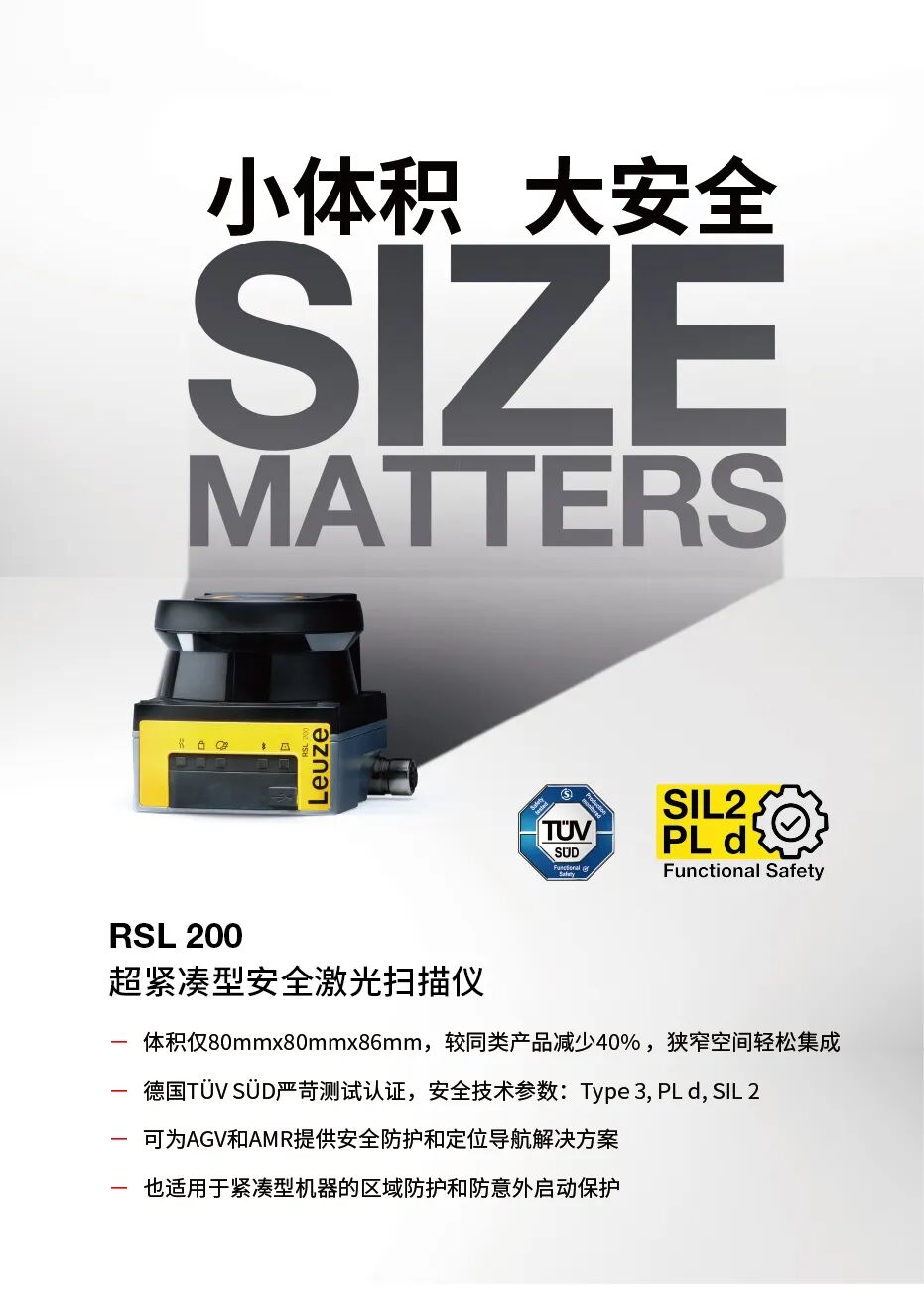 2025年,勞易測發布的超緊湊型安全激光掃描儀RSL200成為市場亮點——這款體積僅80mm×80mm×86mm的產品,憑借極高的集成度和卓越性能,在2025年底榮獲GIT SECURITY AWARD 2026第一名。目前,勞易測中國團隊正積極推動該產品與國內移動機器人頭部廠商的深度定制合作,特別是在鋰電,汽車,電商物流等,應用量增長顯著。目前已成為多家主流 AGV 控制器廠商推薦的配套安全方案。