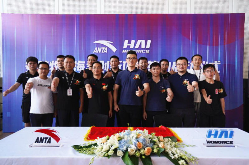 海柔創新創始人及CEO陳宇奇(右)、安踏集團物流總經理(左)出席簽約儀式