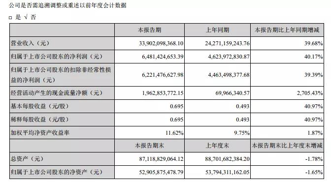 7月24日,海康威視發(fā)布2021年半年度報(bào)告。在報(bào)告中顯示:報(bào)告期內(nèi),公司實(shí)現(xiàn)營(yíng)業(yè)總收入339.02億元,比上年同期增長(zhǎng)39.68%;實(shí)現(xiàn)歸屬于上市公司股東的凈利潤(rùn)64.81億元,比上年同期增長(zhǎng)40.17%。公司2021年上半年整體毛利率為46.30%。