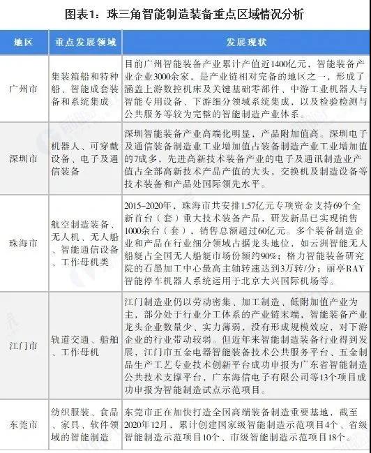 根據珠三角地區的政策規劃,廣州市將重點打造機器人及智能裝備產業核心區;深圳市著力建設成為國內領先、世界知名的機器人、可穿戴設備和智能裝備產業制造基地、創新基地、服務基地和國際合作基地;珠海市重點發展智能電網設備和系統、無人船及控制系統、智能化大型臨港工程裝備;佛山市重點發展數控成套加工裝備、增材制造設備;東莞市重點發展運動控制部件、應用于3C產業的專用機器人、服務機器人。未來發展前景良好。(文章來源:前瞻經濟學人,有刪節)