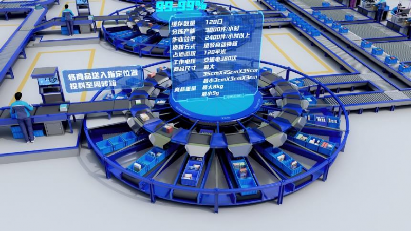訂單分揀是倉儲作業(yè)中最復雜、作業(yè)量最大的環(huán)節(jié)。為解決傳統(tǒng)揀選過程中的揀選密度低、每批次行走距離遠、訂單揀選效率低等問題,曠視自主研發(fā)了智能圓形播種機,能夠更好地適應海量復雜訂單的作業(yè)需求。