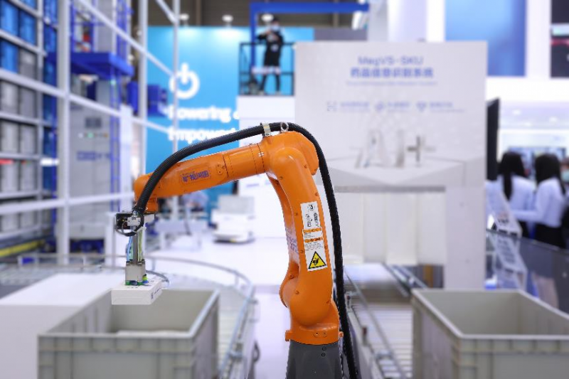 在CeMAT現(xiàn)場,曠視模擬醫(yī)藥流通行業(yè)的典型業(yè)務場景部署了這套系統(tǒng),為參展觀眾演示從藥品下單——藥品輸送——機器人揀選——藥品信息識別——藥品接駁——藥品入庫整個業(yè)務流程。曠視3A智慧物流解決方案已在多個行業(yè)有了實際的應用,助力物流向數(shù)智化、柔性化、低碳化升級。