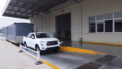 基于廠內(nèi)智能化物流設(shè)備的聯(lián)動(dòng),無(wú)人駕駛物流車(chē)還可進(jìn)行自主裝卸貨、散料上貨等操作,同時(shí)基于拖斗精準(zhǔn)運(yùn)動(dòng)學(xué)模型,它能夠?qū)崿F(xiàn)帶拖斗倒車(chē),并保證倒車(chē)位置精度,實(shí)現(xiàn)拖斗精準(zhǔn)對(duì)接裝卸平臺(tái),提升裝卸貨效率。