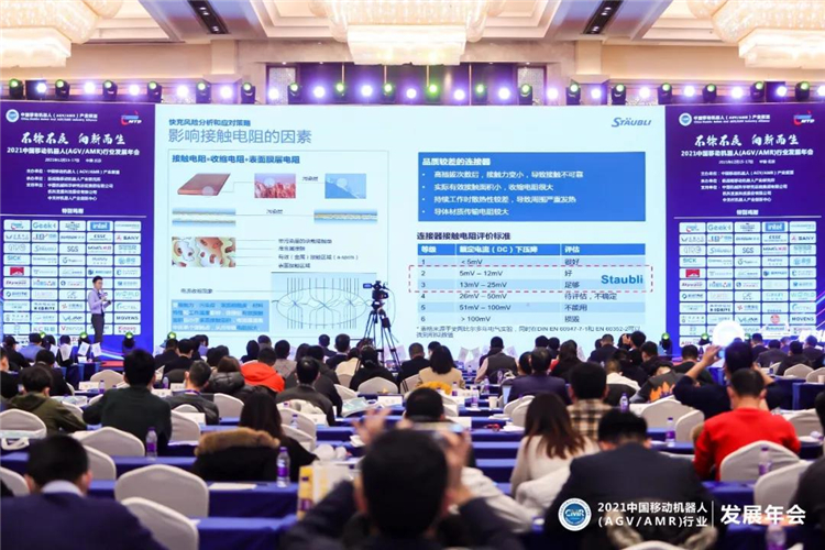12月15-17日,由中國移動機器人(AGV/AMR)產業聯盟主辦的“2021 中國移動機器人(AGV/AMR)行業發展年會”在北京龍熙維景國際會議中心舉行,大會以“不徐不疾,向新而生”為主題,對當前產業現狀和未來發展趨勢進行了深入探討。史陶比爾作為聯盟理事成員企業,做了題為《大電流快充對充電連接的挑戰》的專題發言。