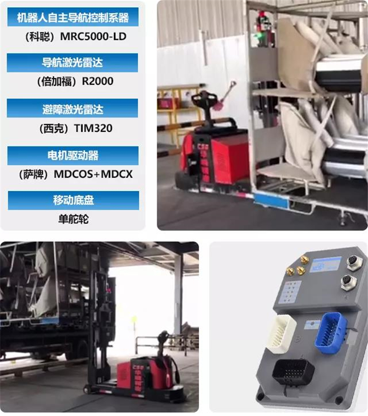 某汽車配件廠叉式搬運AGV案例,搭載MRC系列的移動機器人電控核心部件。