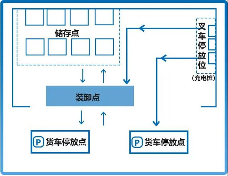 3、AGV叉車在停車點自動裝卸貨物至卸車點