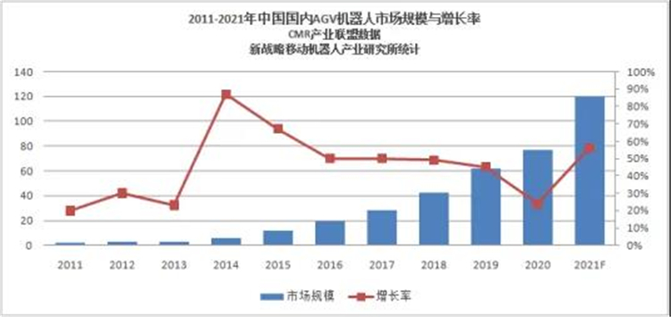 數(shù)據(jù)來(lái)源:CMR產(chǎn)業(yè)聯(lián)盟,新戰(zhàn)略移動(dòng)機(jī)器人產(chǎn)業(yè)研究所(注:2021年年度數(shù)據(jù)以最終發(fā)布為準(zhǔn),目前預(yù)測(cè)120億元)