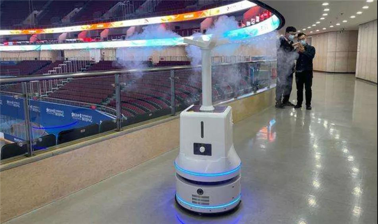 布科思機器人生產(chǎn)的霧化消毒機器人和UV紫外線消毒機器人被應(yīng)用于冬奧會場館的消殺工作。霧化消毒機器人采用化學(xué)消毒的方式,一次能裝16升消毒水,通過頭頂上的四向噴頭將液化出來的氣物噴灑至空氣中,一分鐘消毒面積可達36平方米,單臺機器人消毒面積最多可覆蓋1000平方米以上,續(xù)航時間4-5小時,將被用于進行冬奧會場館大場景的消殺工作。